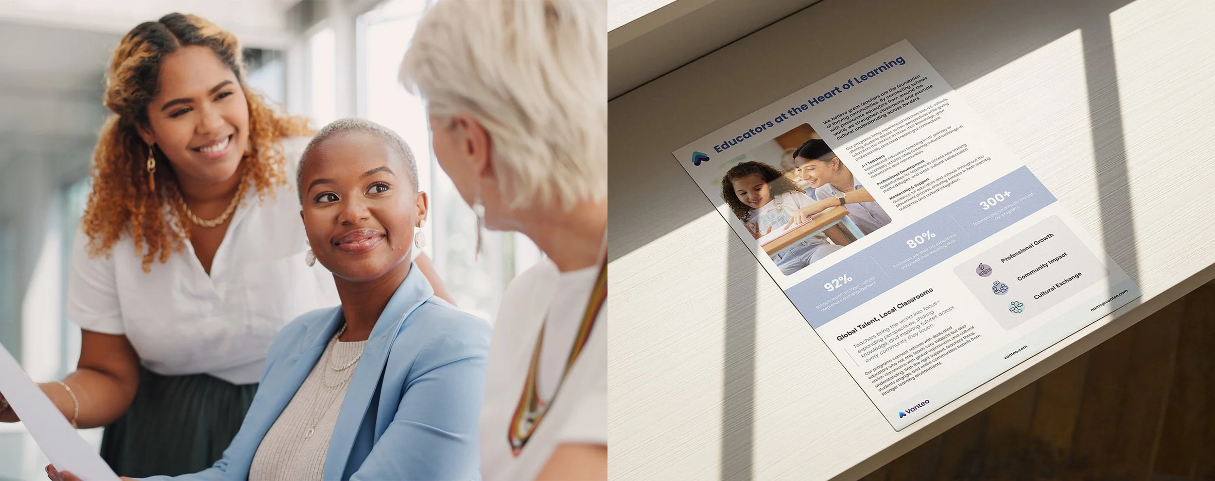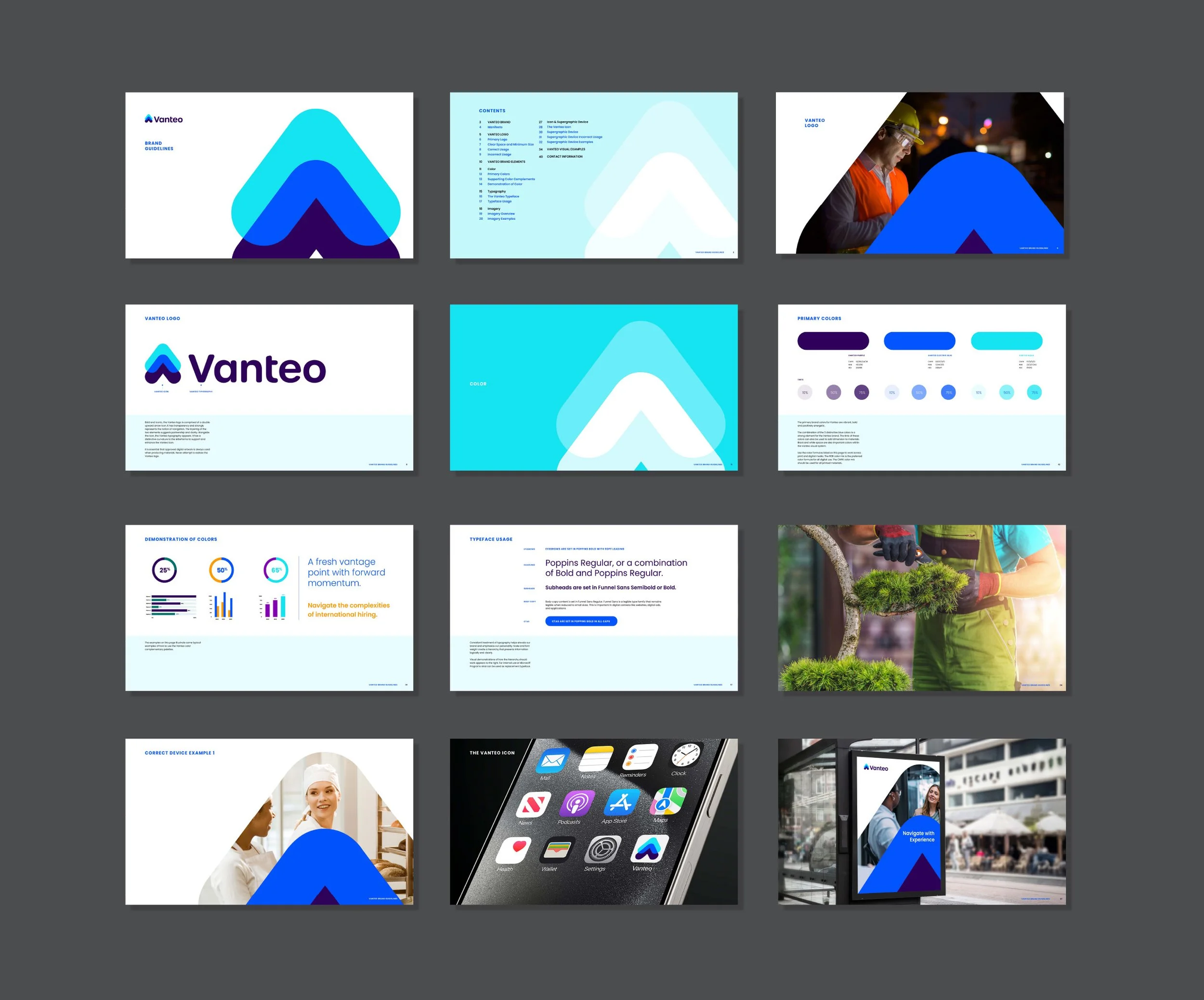 I led the naming development for "Vanteo," landing on an identity that suggests a better vantage point for global hiring.
